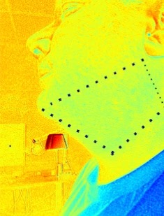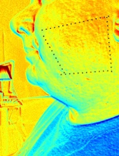 さらに、参加者の中からランダムで複数名選出し、市販の複数刃カミソリで顔の片側だけ剃ってもらいました。 計測ではミモザ・プロという撮影装置を利用して、左右の頬と左右の首、合計4箇所を、下記のステップで撮影を行いました。